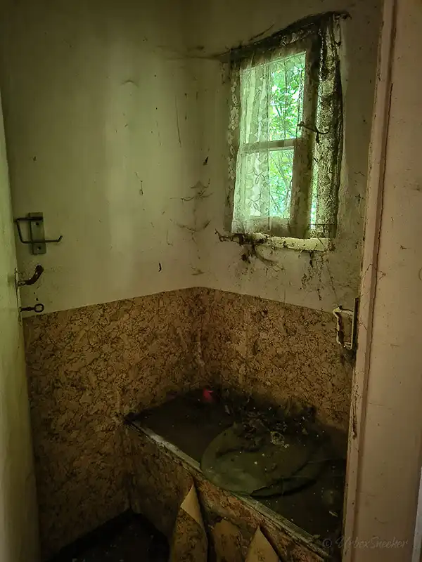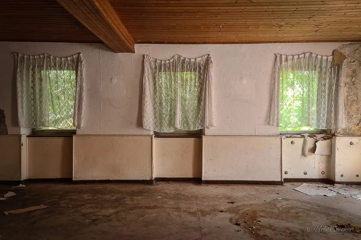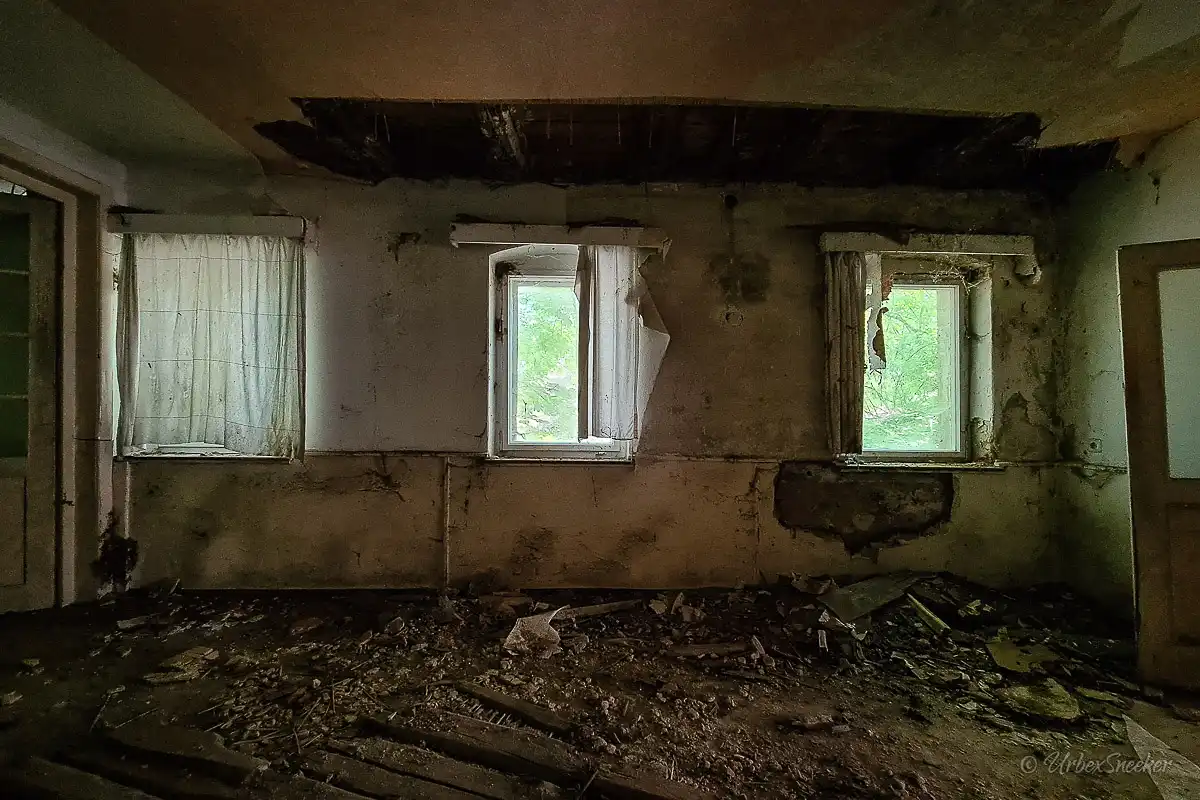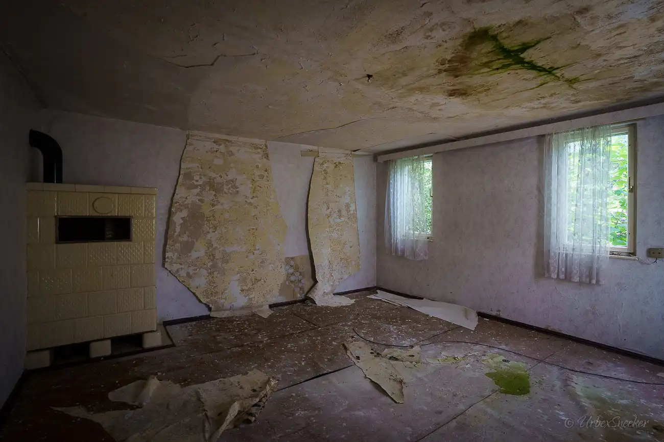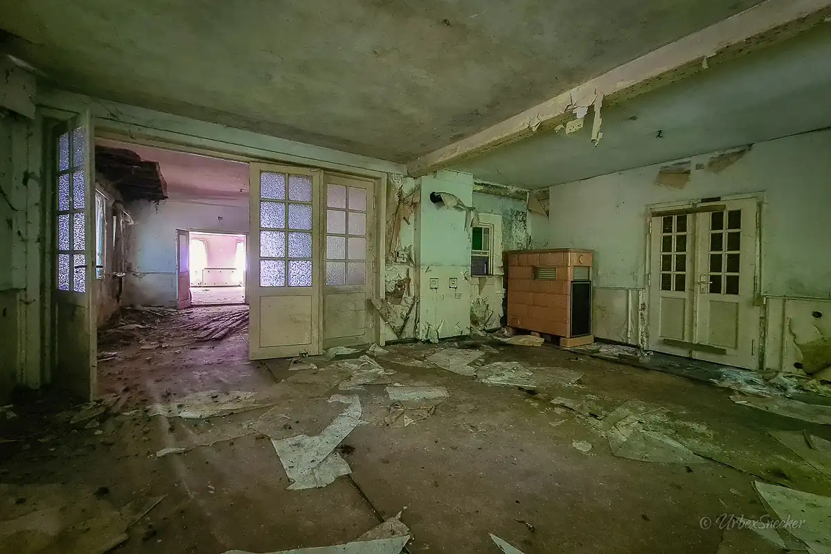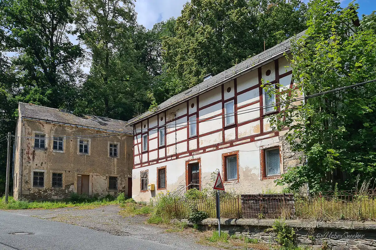 Erbaut 1870 hatte diese Gaststätte viele Namen während ihrer Existenz, u.a. „Bahnhof-Restaurant“ und zuletzt Gaststätte „Zum Weißeritztal”. Man möchte meinen, dass sie in einer perfekten Gegend liegt, da es auf den Wanderrouten rund um Seifersdorf nicht viel Einkehrmöglichkeiten gibt. Dem Zustand nach zu urteilen steht diese verlassene Gaststätte schon sehr lange leer und wurde leider dem Verfall presigegeben. Der Boden ist aufgeweicht, die Decke im Erdgeschoss bricht beretis teilweise durch. Was ich aber wirklich sehenswert fand, war die uralte Toilette und das kleine Waschbecken davor in der Ecke. Einen „modernen“ Toilettenraum habe ich nirgends weiter gefunden. Auch die alten Schiebetüren und die eine Flügeltür mit den kleinen Fensterchen haben mir gefallen. Das sind eben die Details eines alten Gebäudes, die den Charme der damaligen Zeit erhalten haben.